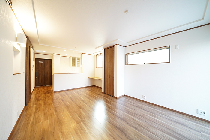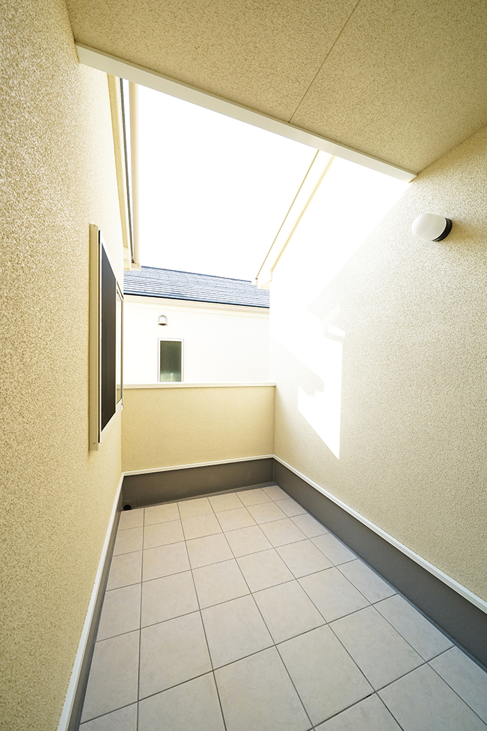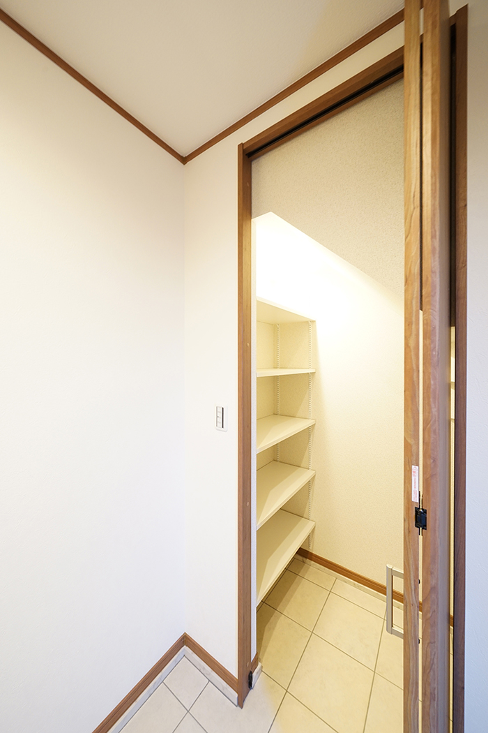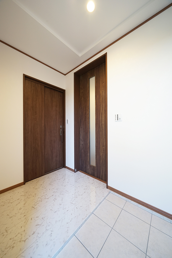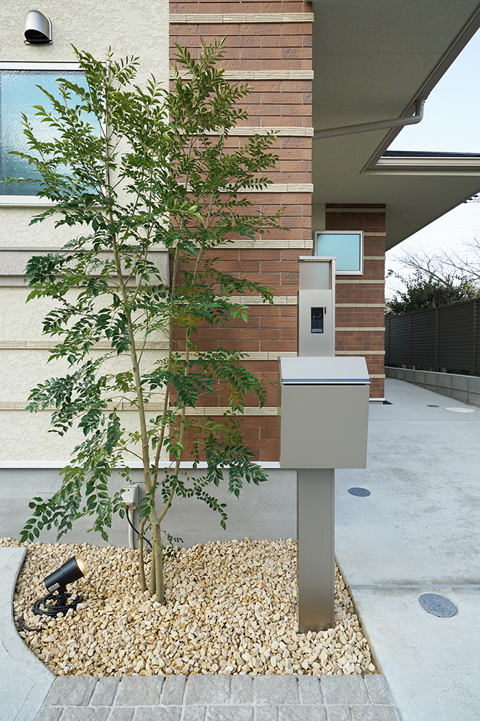 「子育てのしやすさ」を追求した住み心地の良い家です。奥様がベビーカーを押して玄関まで登れるよう設計された、スロープとしても使える駐車スペースや段差のない玄関ホール、開口の広い引戸の採用など、子育てと将来的なバリアフリーを考えて設計を行いました。