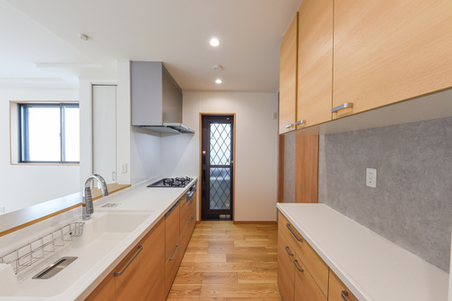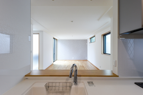 家族団らんの時間が自然と増えるようなお住まいです。約19帖のLDKは、リビング・ダイニング・キッチンが一直線になったI型LDKを採用することで、お料理中でもご家族とコミュニケーションをとっていただけます。また、2階のお部屋に上がるまでに必ずリビングを通るリビング階段のため、顔を合わせて「おかえり」「ただいま」を言ったり、お互いの今日一日の出来事を伝えたりと、会話をする機会が生まれます。