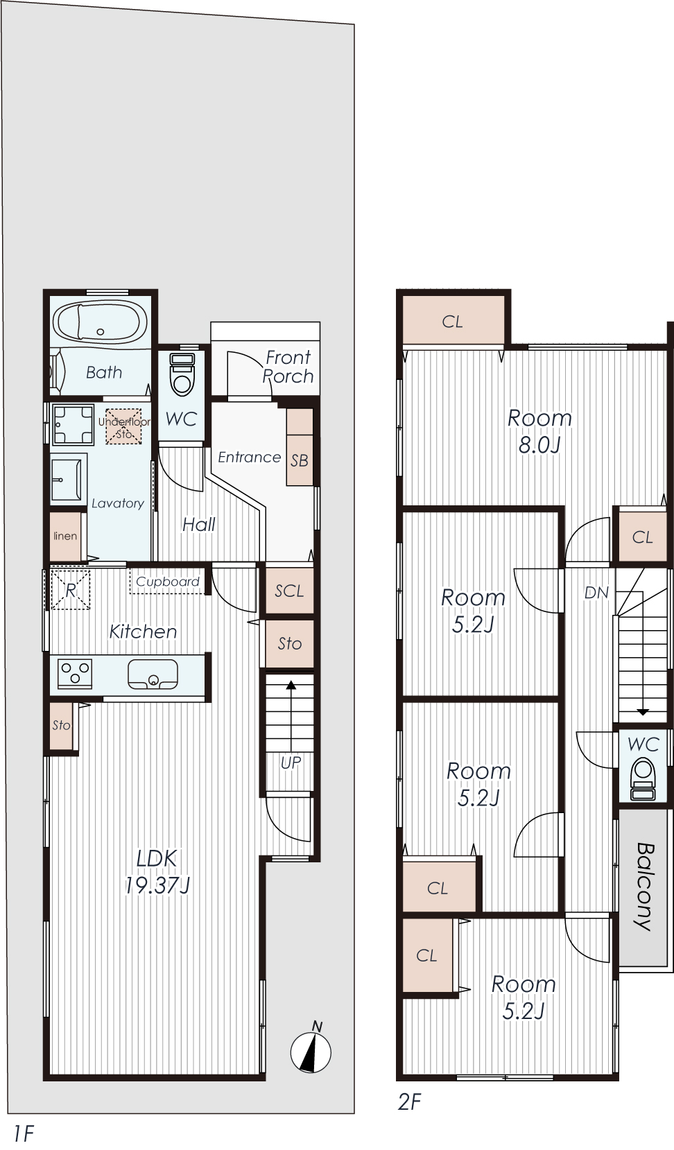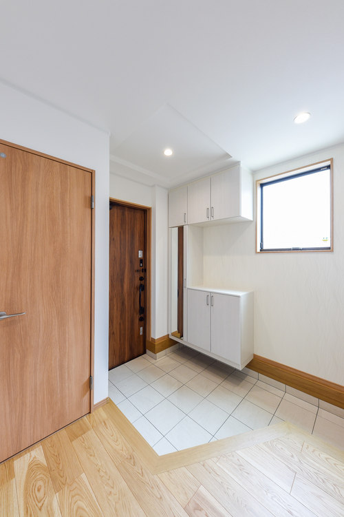 私が思うこの物件のポイントは家事動線の良さとPP分離です。 玄関入ってすぐに水回り関係がまとめられているので、 沢山お買い物をしても、すぐに収納していただくことが出来ます。 洗面所も近いので帰宅後すぐに手を洗っていただけます。 また、1階部分はLDKを広々とって、2階部分にプライベート空間を 持ってくることでプライベートとパブリックを分離することが出来ています。